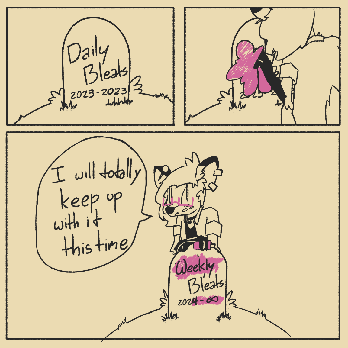 I started doing weekly comics! I intend to keep drawing one of these every week to use them as banners in each installment of the newsletter. I will also be posting the comics (with links to each newsletter update) on Tumblr, so if you have a Tumblr you can indirectly follow the newsletter there I guess?